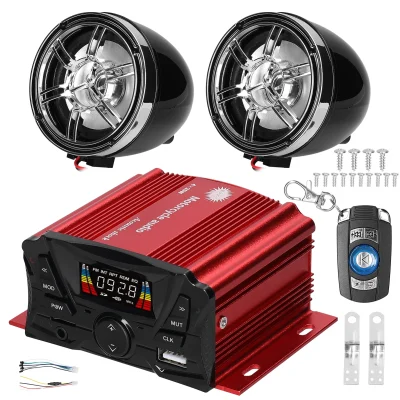 12V Motorcycle Red Sound System SD USB MP3 Motorcycle Bluetooth Audio Remote Control Stereo 2 Speakers Waterproof FM Radio